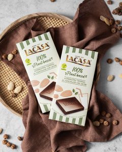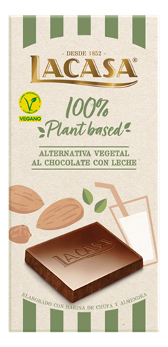 Tableta Lacasa 100% Plant Based alternativa vegetal al chocolate con leche elaborado con harina de chufa y almendra